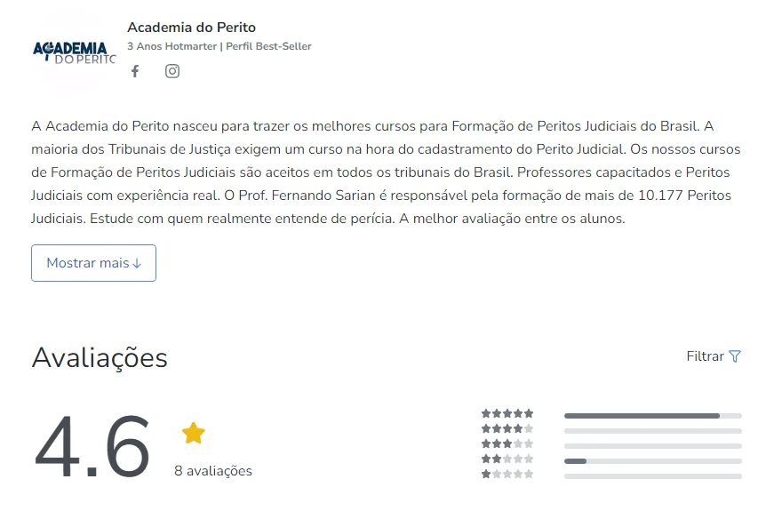 O investimento na Academia do Perito, sem dúvida, é recompensado pela qualidade do conteúdo, pela prática adquirida e pela potencialidade de ascensão profissional.